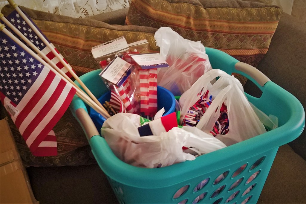 In terms of parade float prep, we are going with a Flag based theme, so I raided some of the Memorial Day clearance racks and have been hunting for Fourth of July based items as well. I have added a laundry basket to my trunk specifically for float finds. (Pro-tip, those Amazon boxes you don’t know what to do with? Trunk organizers… pop the flaps inside the box and they are super handy modular storage that can also still be closed. Second Pro Tip? When you have lots of loose things to carry to or from your car (like, say, float décor) grab a laundry basket. They have handles and are literally made for carrying lots of loose items. Things you learn when you park a decent walk from your front door).