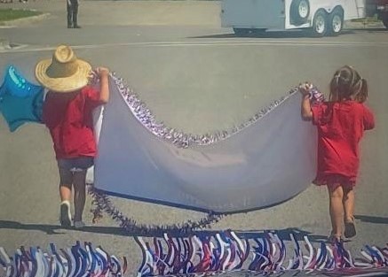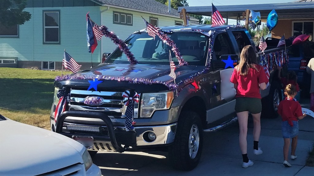 We found out we were not going to be able to use a trailer very last minute, so we decked out my uncles’ truck in the most sparkly, patriotic, goofy way possible! Our theme was “Together Again Under the Flag” and I think we nailed it. I will say, I know I said we have a rivalry with the local dept store, and that is true, but the head of their float team had been sick for the two weeks leading up to the parade so out of respect we didn’t really engage in shenanigans this year. It’s no fun if it’s not in good humor, ya know?