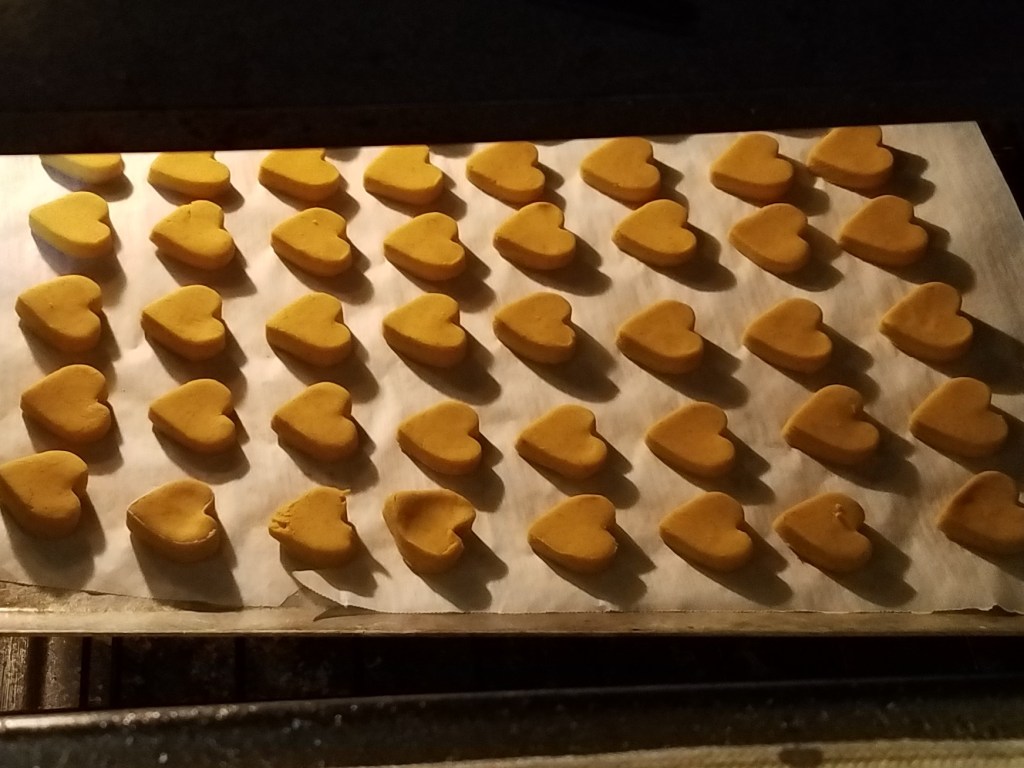 Speaking of the dogs and keeping them safe, (yes, it’s a loose transition but let me have it) we made pumpkin dog treats and the dogs have lost their minds over it.