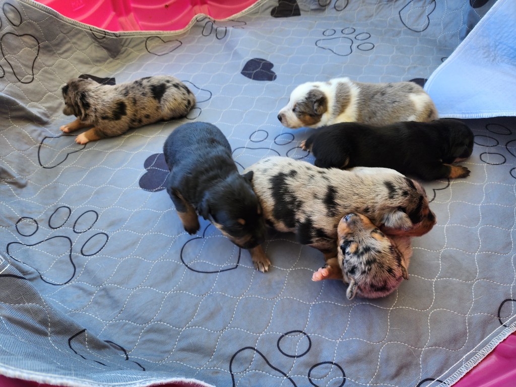 My cousin’s cattle dog gave him a little surprise on return home from the training facility, so I got to snuggle with puppies!